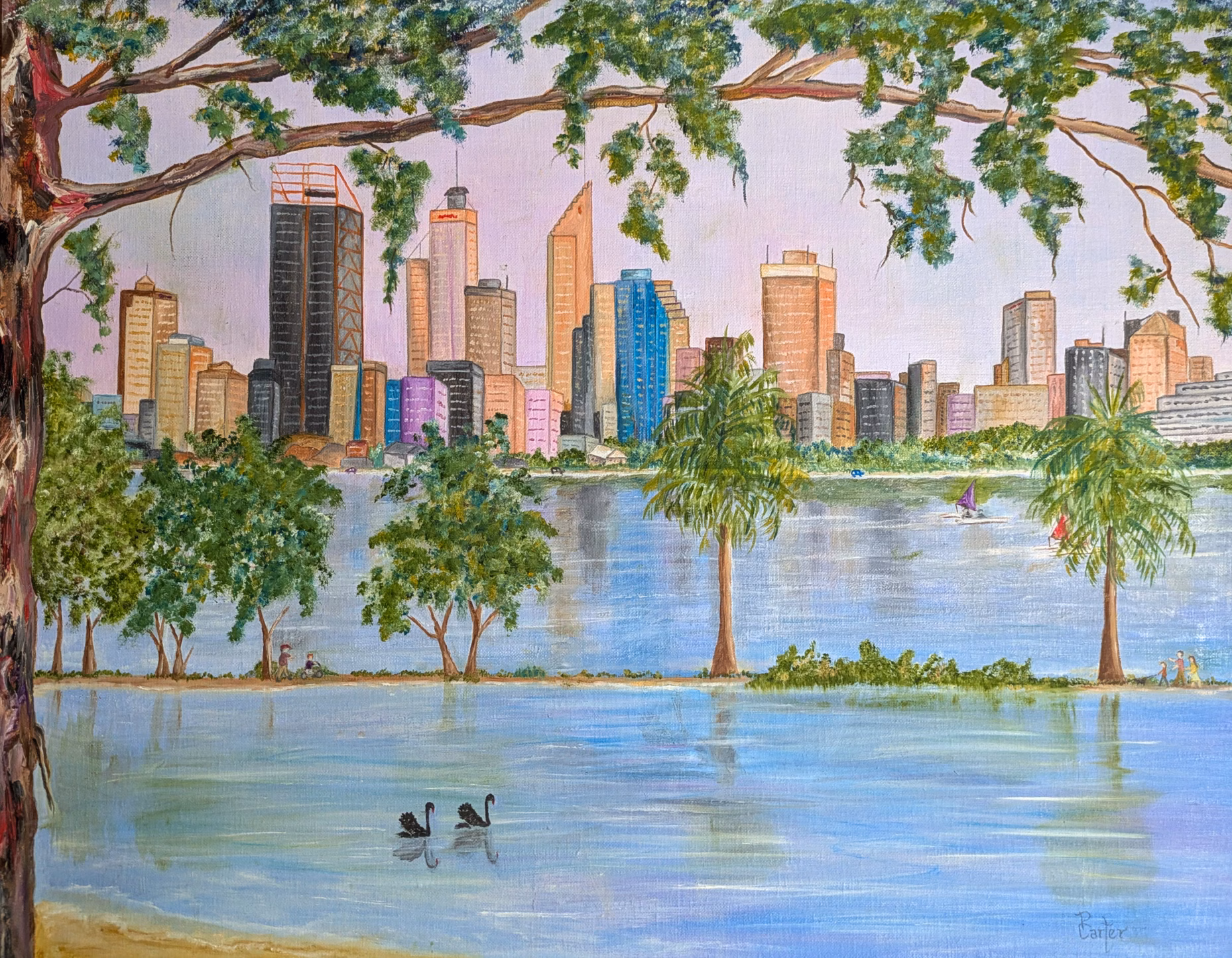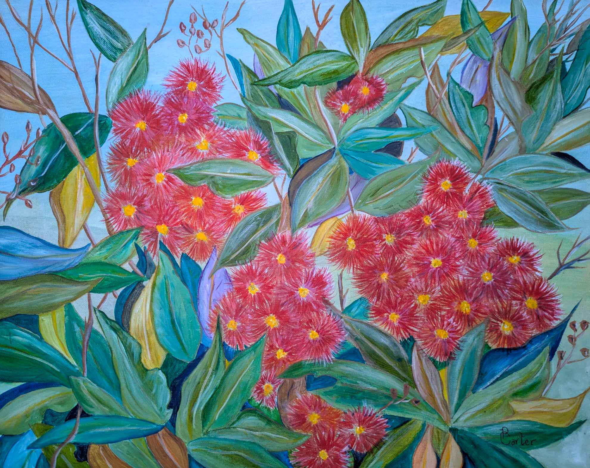 A selection of Pam's paintings, primarily acrylic on canvas.